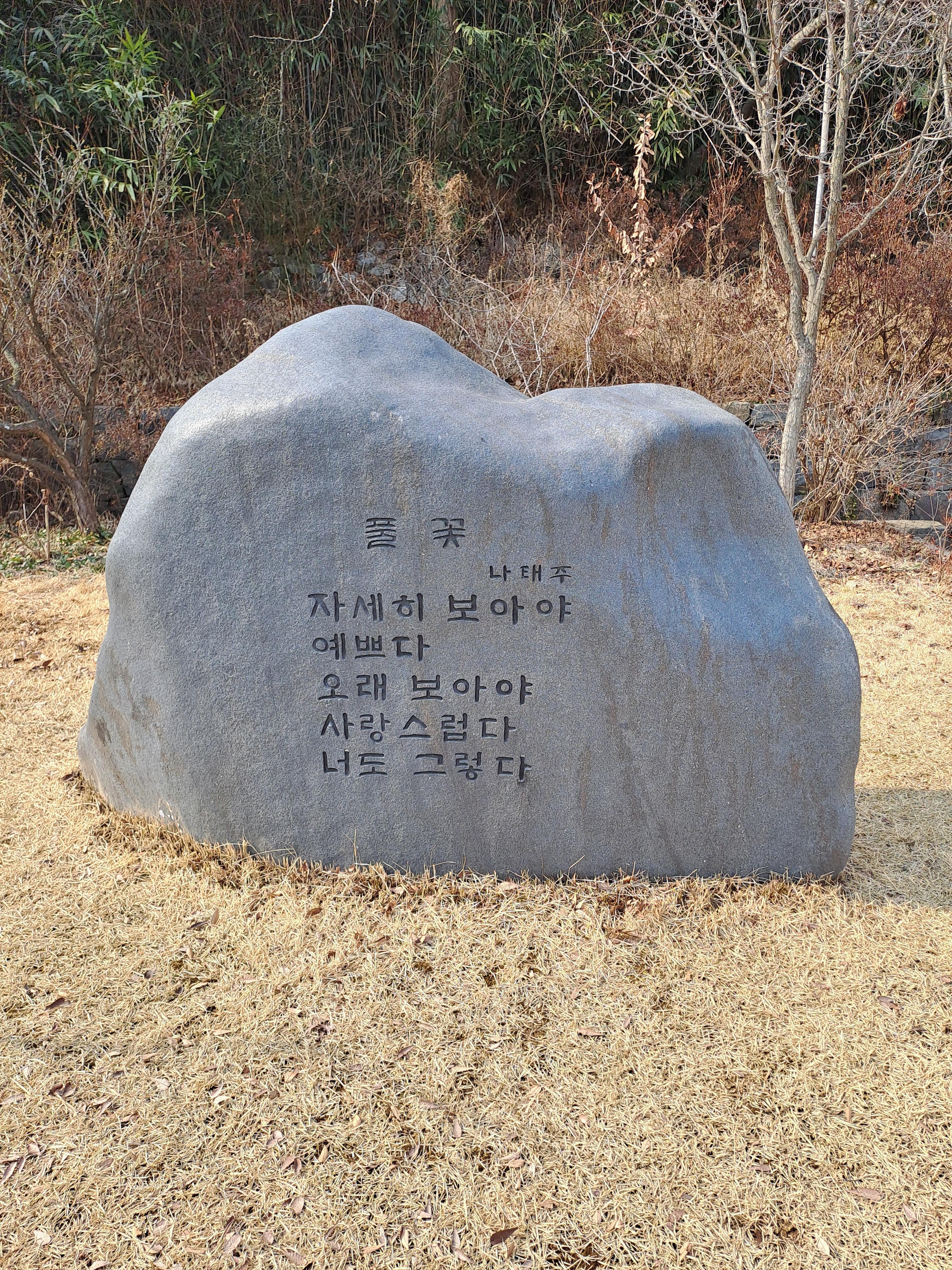 건물옆에는 유명한 시 '풀꽃'이 새겨진 바위가 세워져 있다.