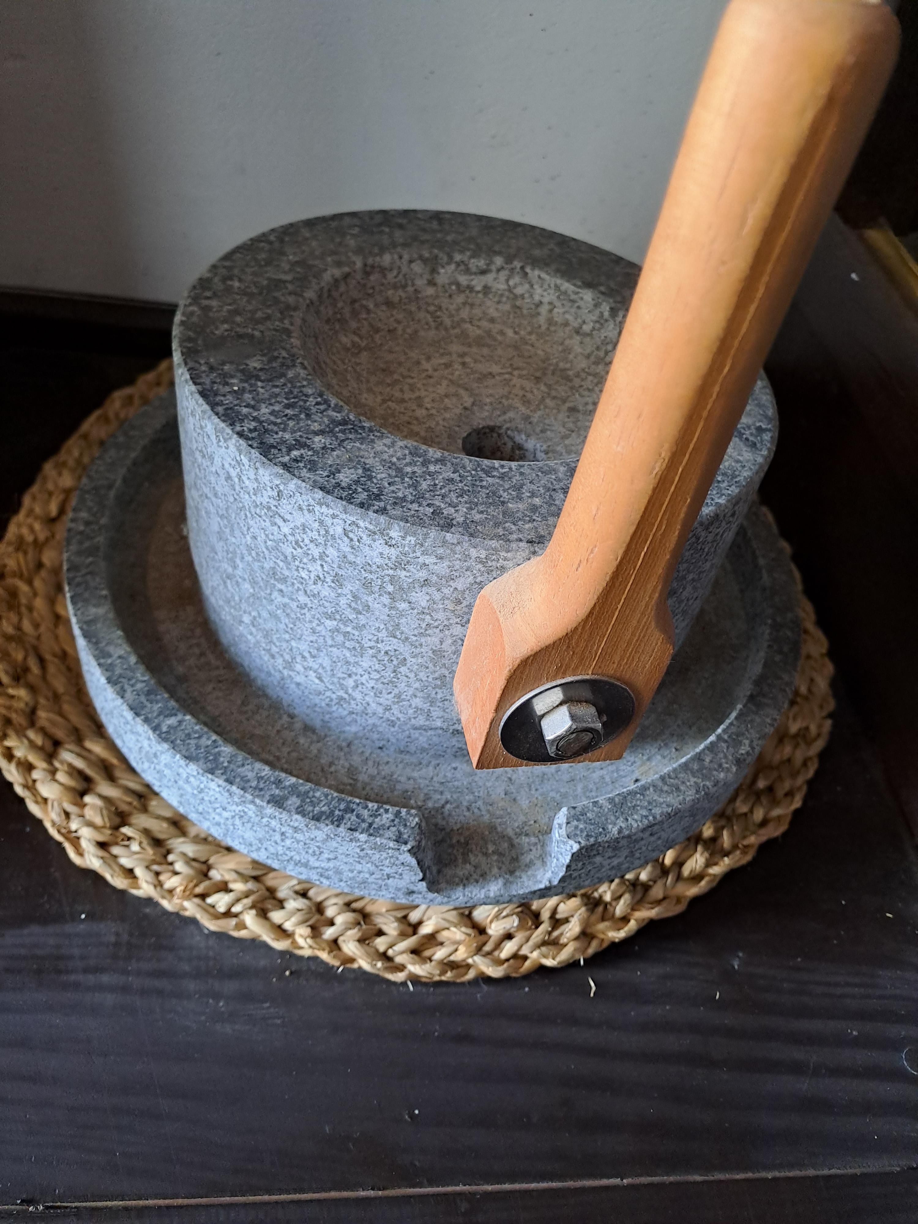 입구에는 미니 맷돌이 앙증맞게 자리잡고 있다.
