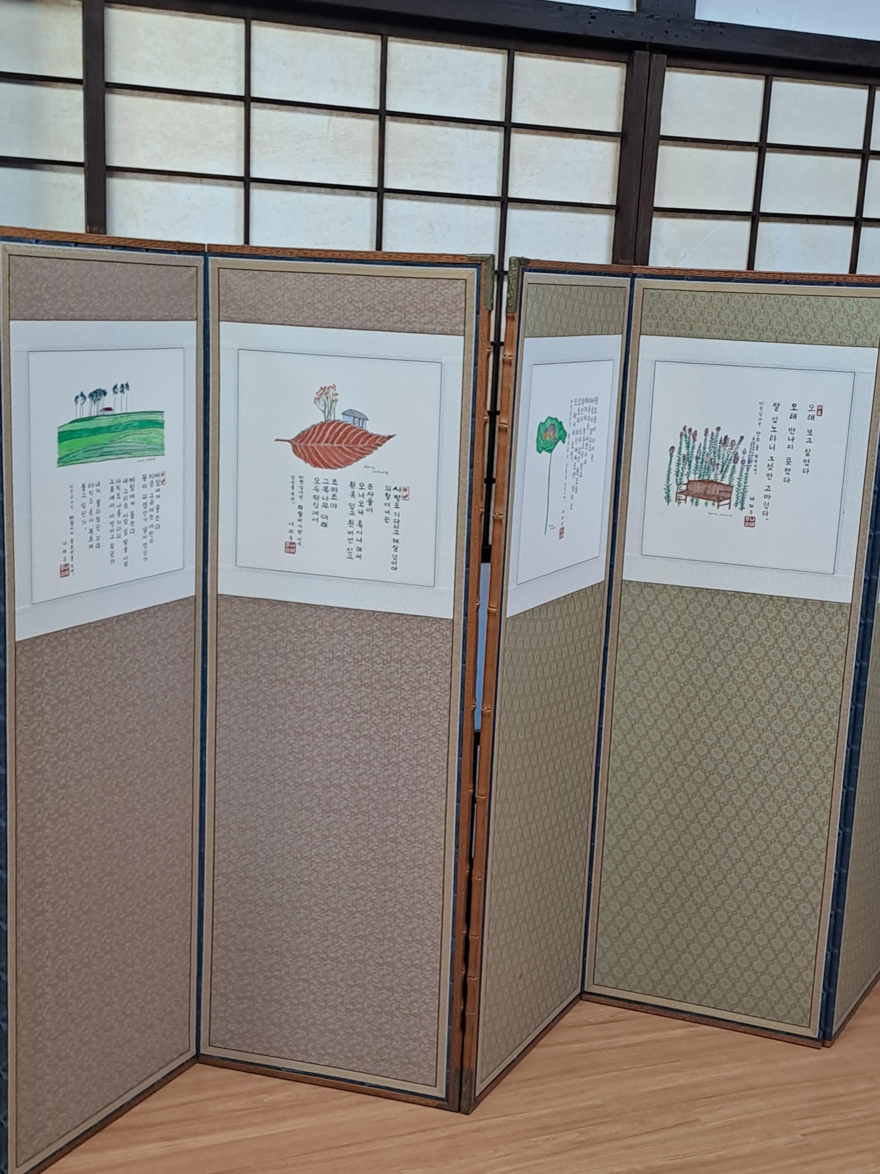직접 적은 시화,사진,액자,병풍등이 있다.