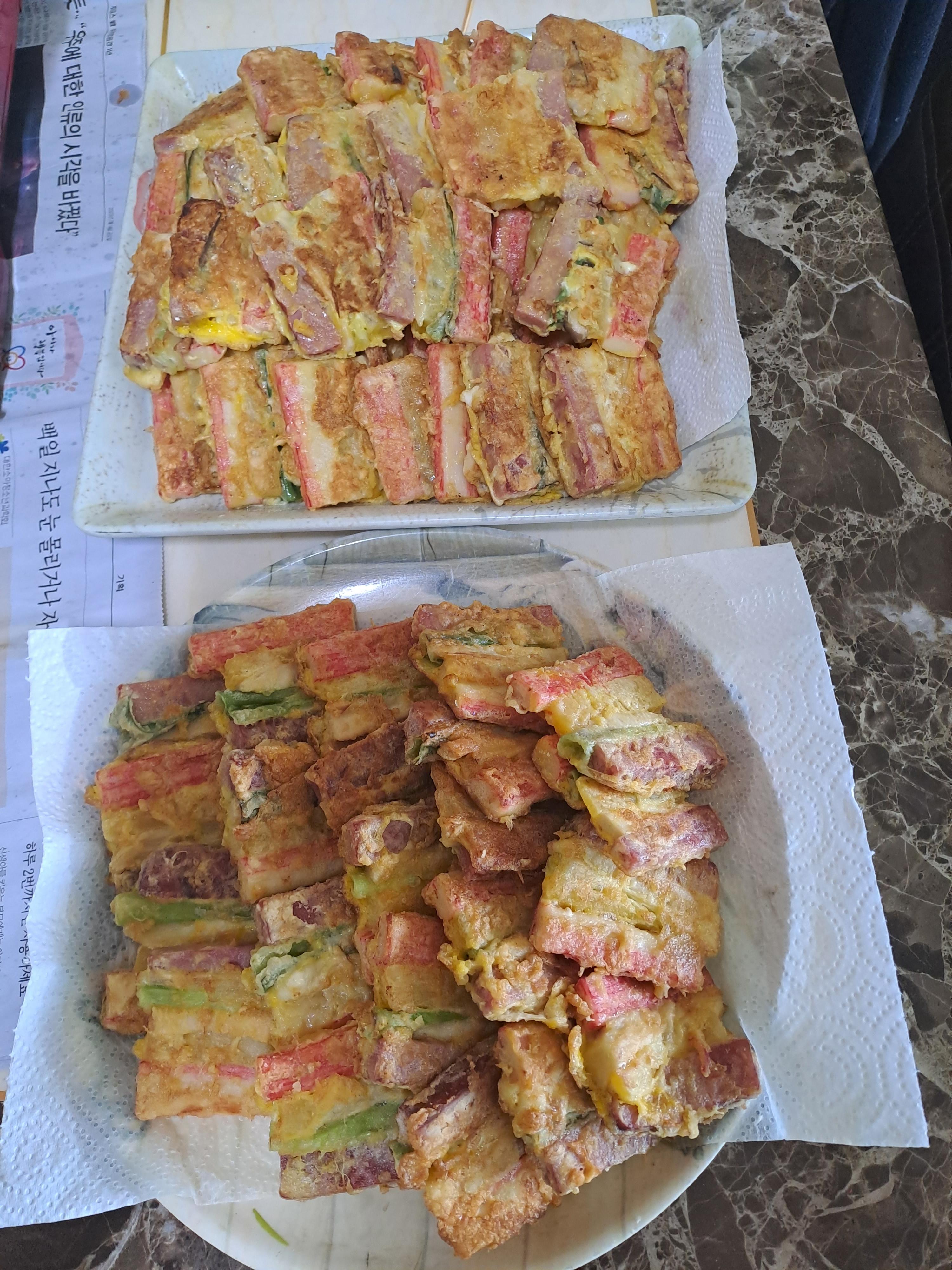 전날 아들과 준비한 여러가지 전도 먹고