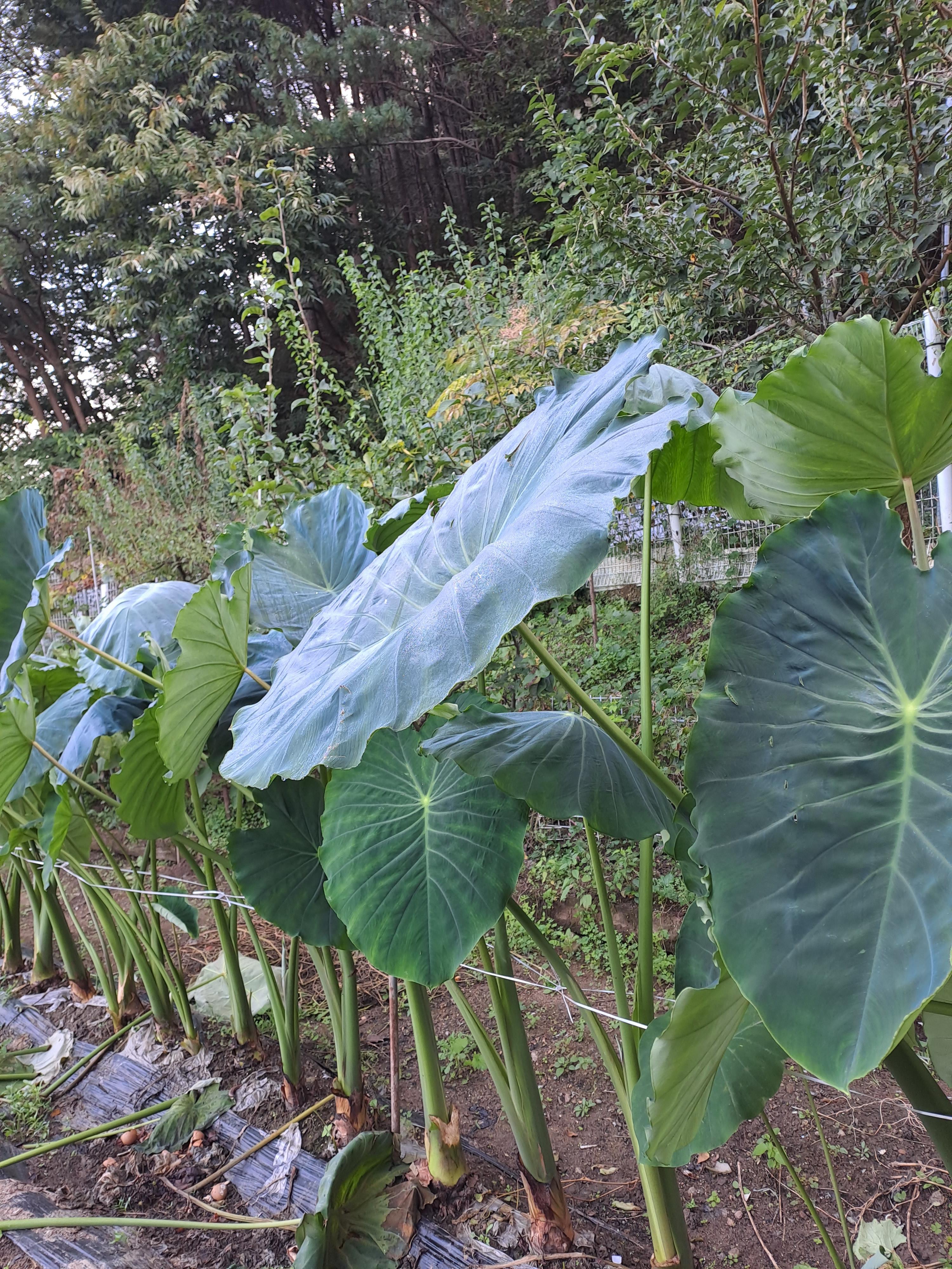 텃밭에 토란이 튼실하게 자라고 있는 중이다.