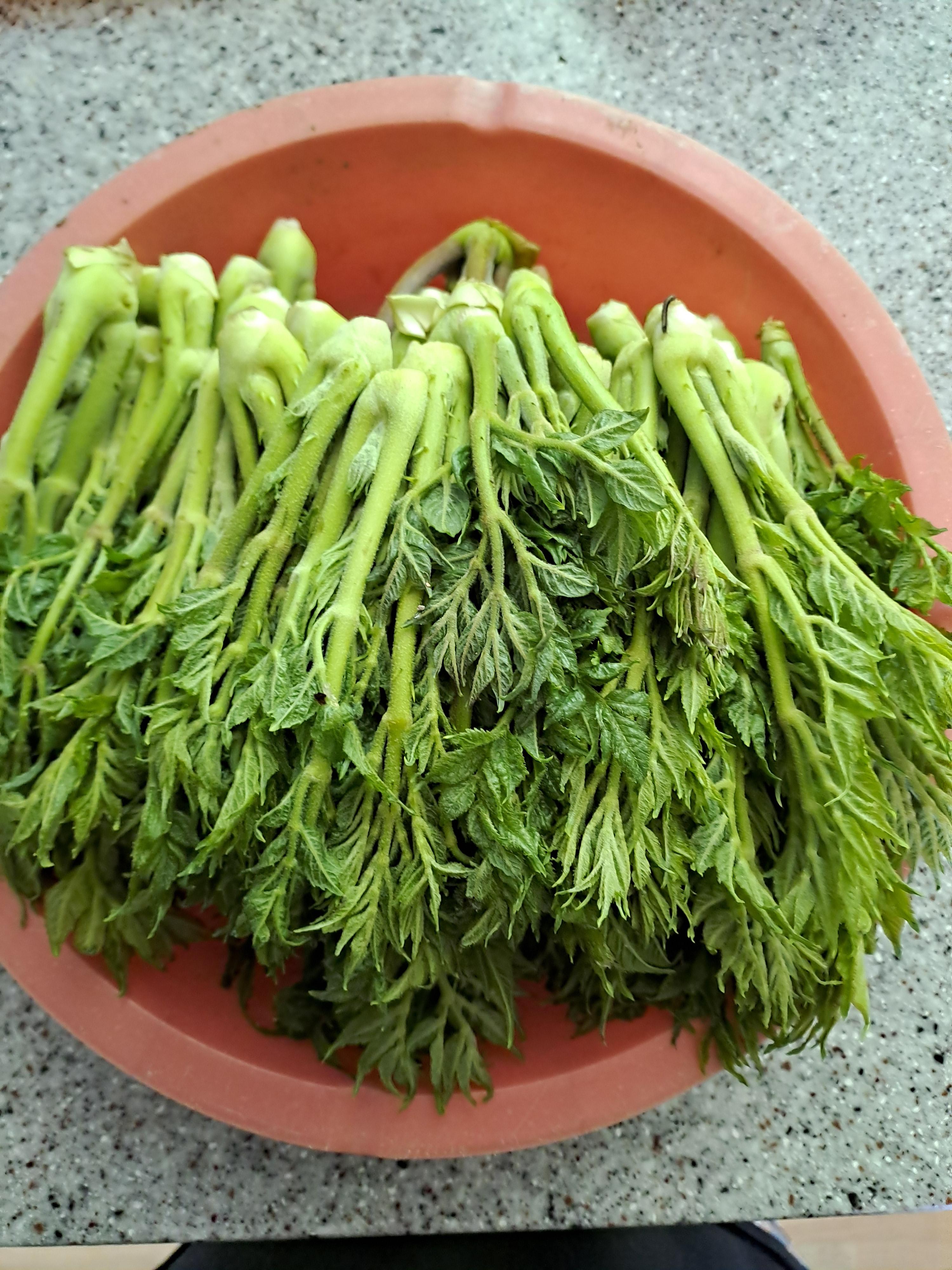 이 귀한두가지 나물을 동네 아저씨가 이만큼 주었다.
